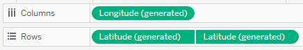 - Add Latitude (generated) into the Rows card two times and make them Dual Axis.