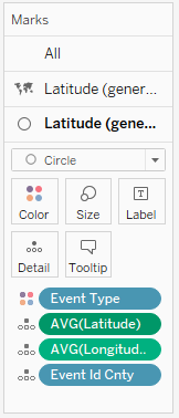 - For the second Marks card, set the mark type to Circle and drag-and-drop: