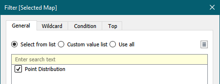 - Add the Selected Map attribute into the Filters card and select the Point Distribution checkbox in the filter dialogue.