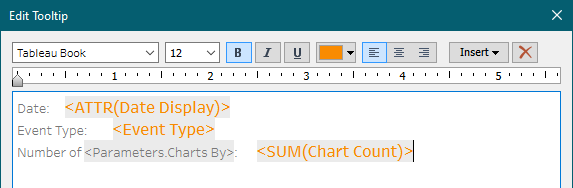 - Set the colors for Event Type as follow, using the color picker tool provided by Tableau.