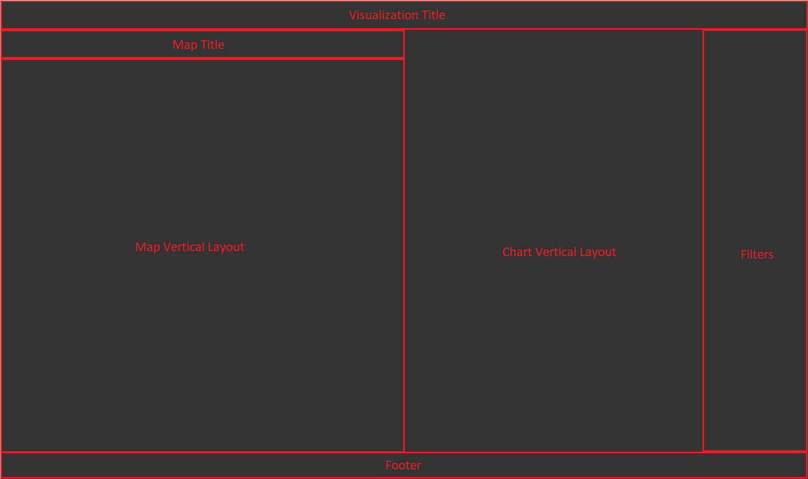 - Setup the initial layout for the dashboard as follow, using the Vertical object for the map, charts, and filter layout.
