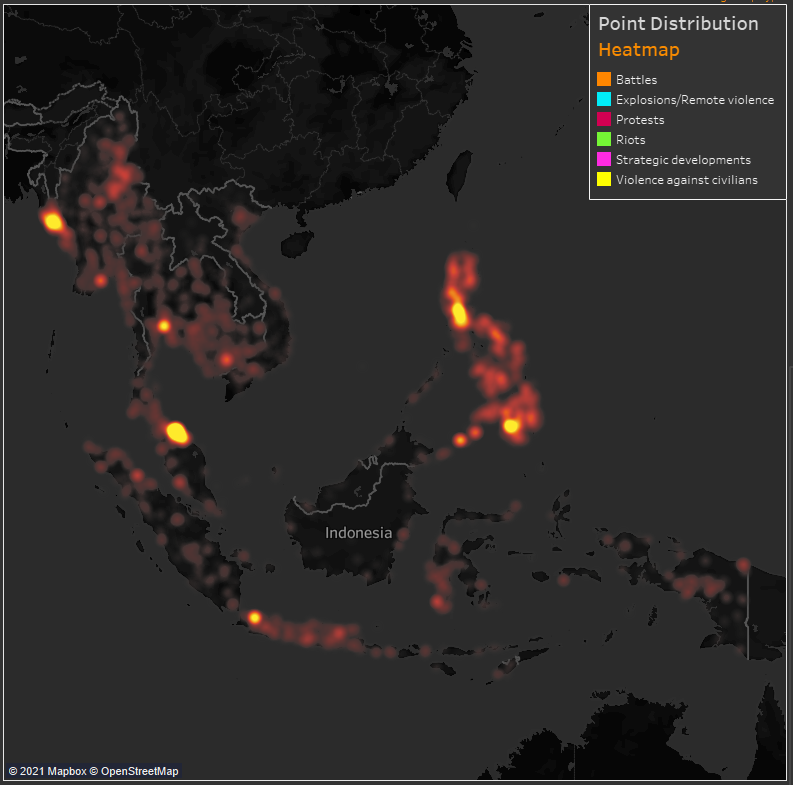 - Most of the armed conflicts in South East Asia are centralized in Myanmar and Philippines.