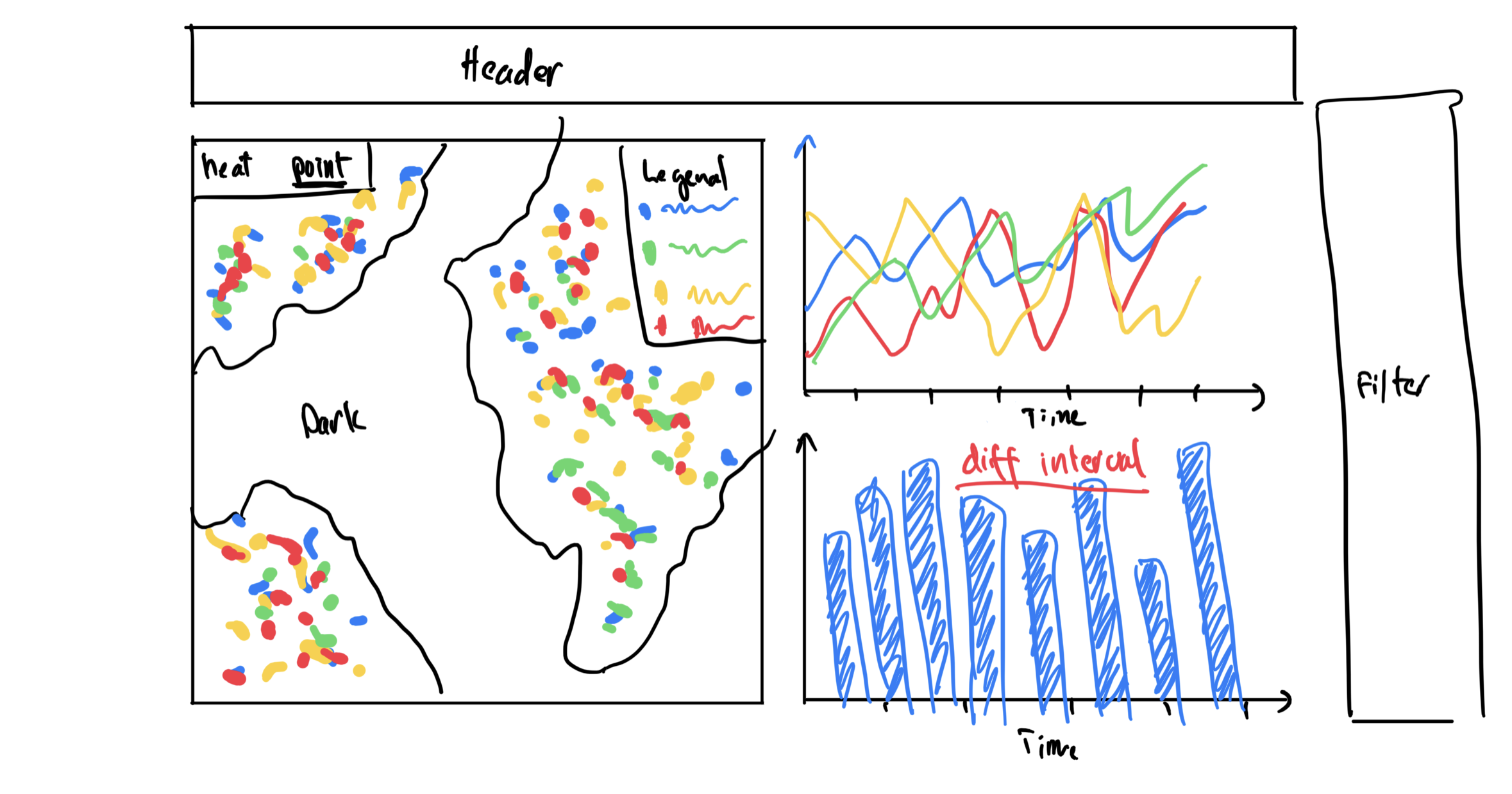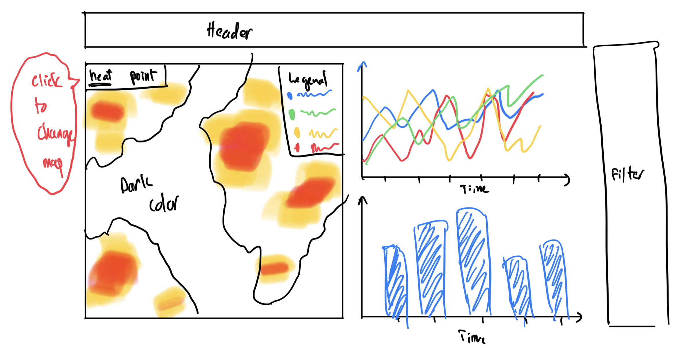 - The maps and the line charts are highly correlated so a helpful interaction would be to highlight the same event type on both the map and the line chart when user clicks on either a certain events in the map or a line in the chart.